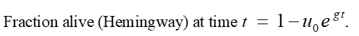 - Hemingway assumes the urban area or fraction dead grows exponentially: ut = u0 e gt. The thing that’s growing constantly is the state (i.e. dead, or urban).
